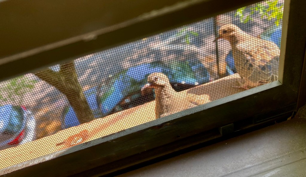 Mourning doves, window sill. Brooklyn.